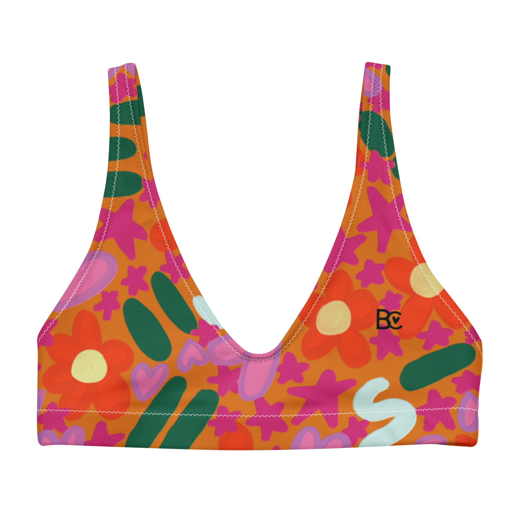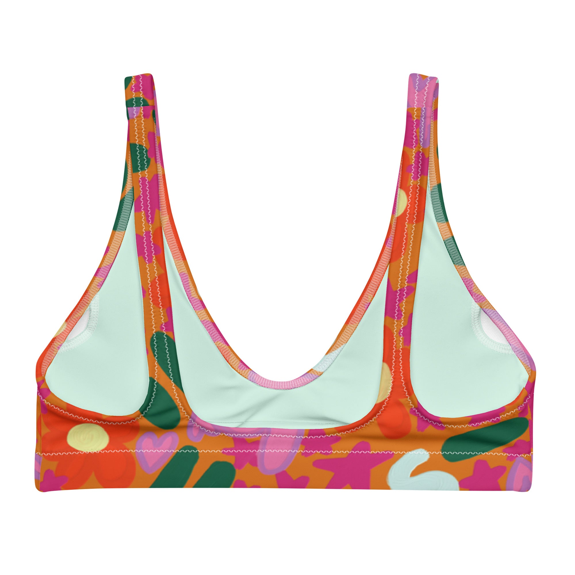 Este no es cualquier bikini top… es el top que transforma tu estilo. Perfecto para la playa, el gym o cualquier aventura que te saque sonrisas. Ilustrado por Blanca Claudio (sí, la de los prints que todo el mundo ama 🧡), está hecho con tela reciclada, doble capa y padding removible para que lo ajustes como quieras.