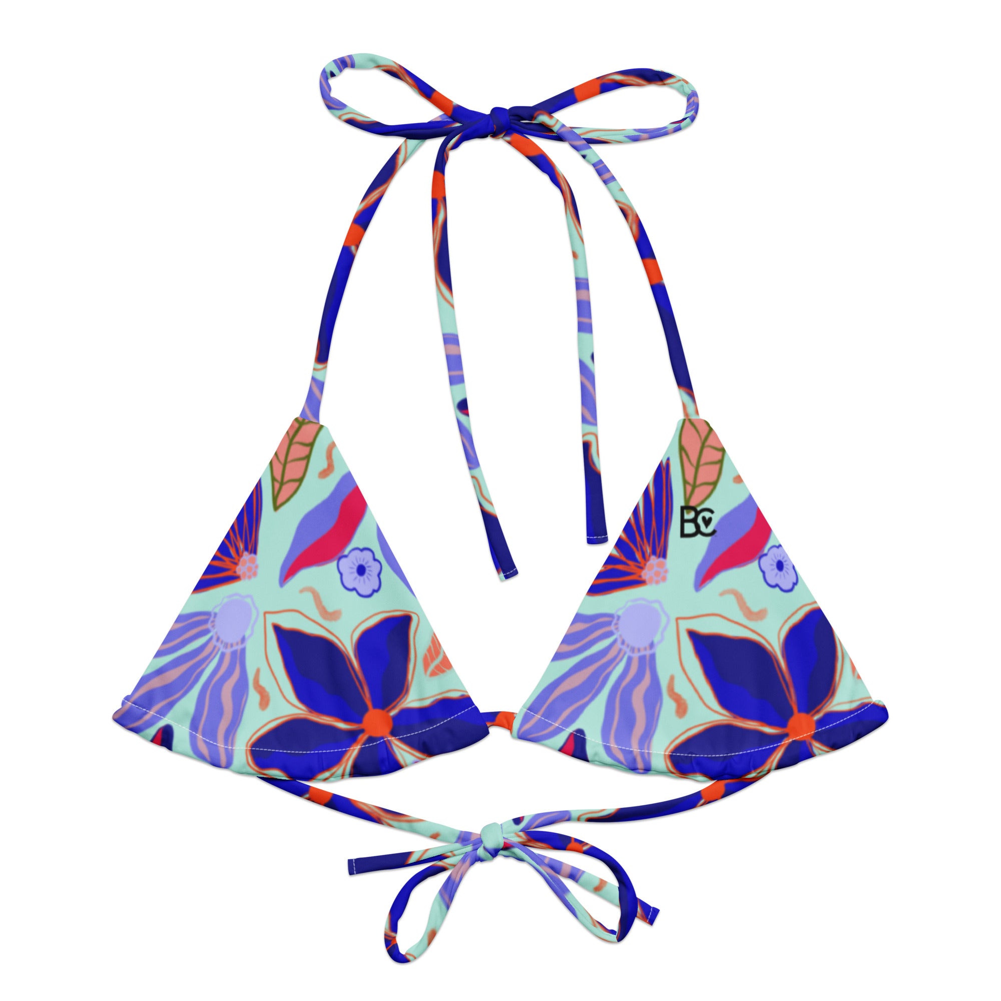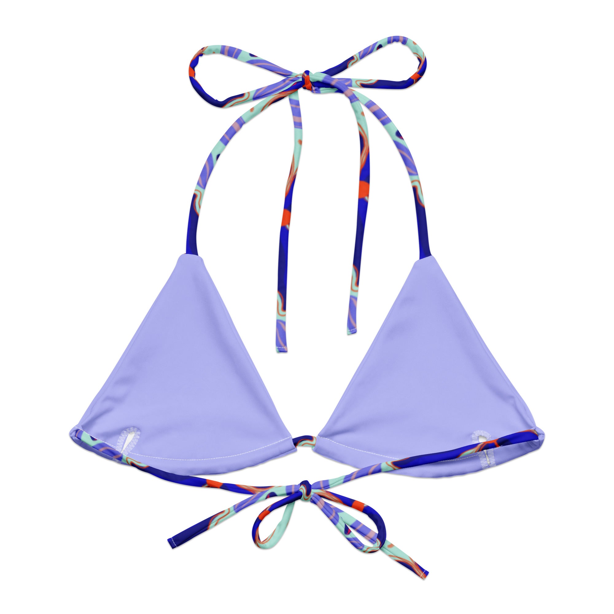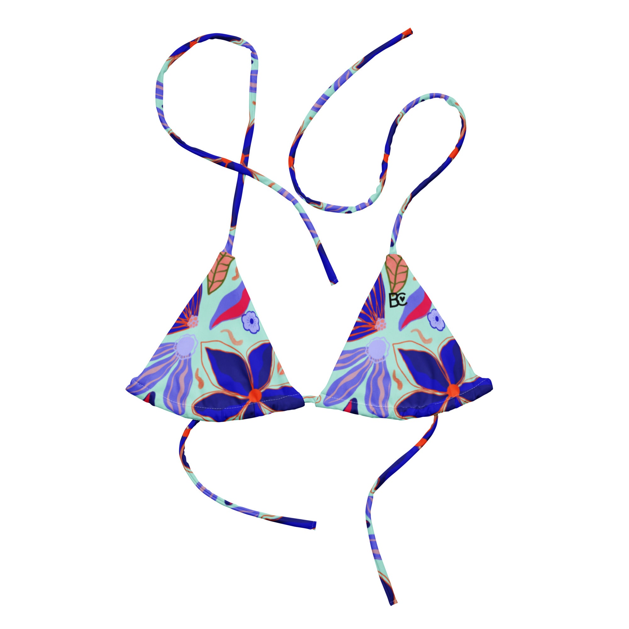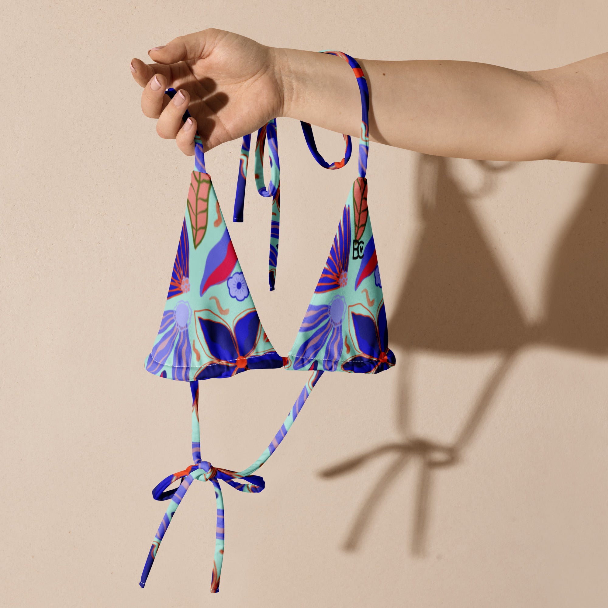 Este top de bikini es ideal para tus días de playa, piscina o simplemente para crear un look veraniego único. Está hecho con tela reciclada, tiene protección solar UPF 50+ y sus tiritas se ajustan como tú quieras — ¡lo puedes amarrar de varias formas para que lo hagas tuyo! 💦✨