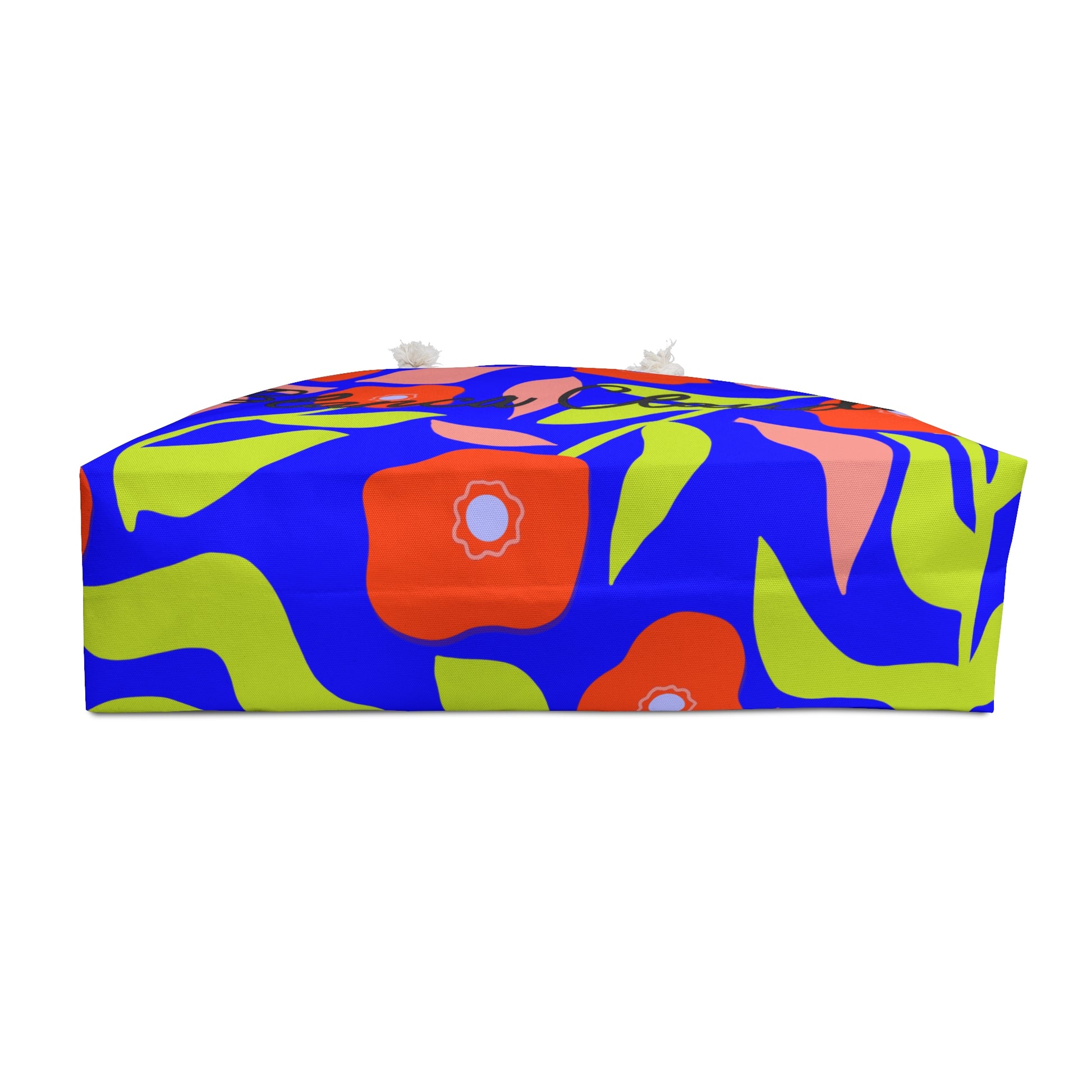 Este weekender bag lo tiene TODO: espacio de sobra, print ilustrado y esa vibra que te hace sentir en modo vacaciones aunque estés yendo al colmado. 🌈✨ Tiene asas de soga en crema, fondo estructurado y un interior suavecito que mantiene todo en su sitio.