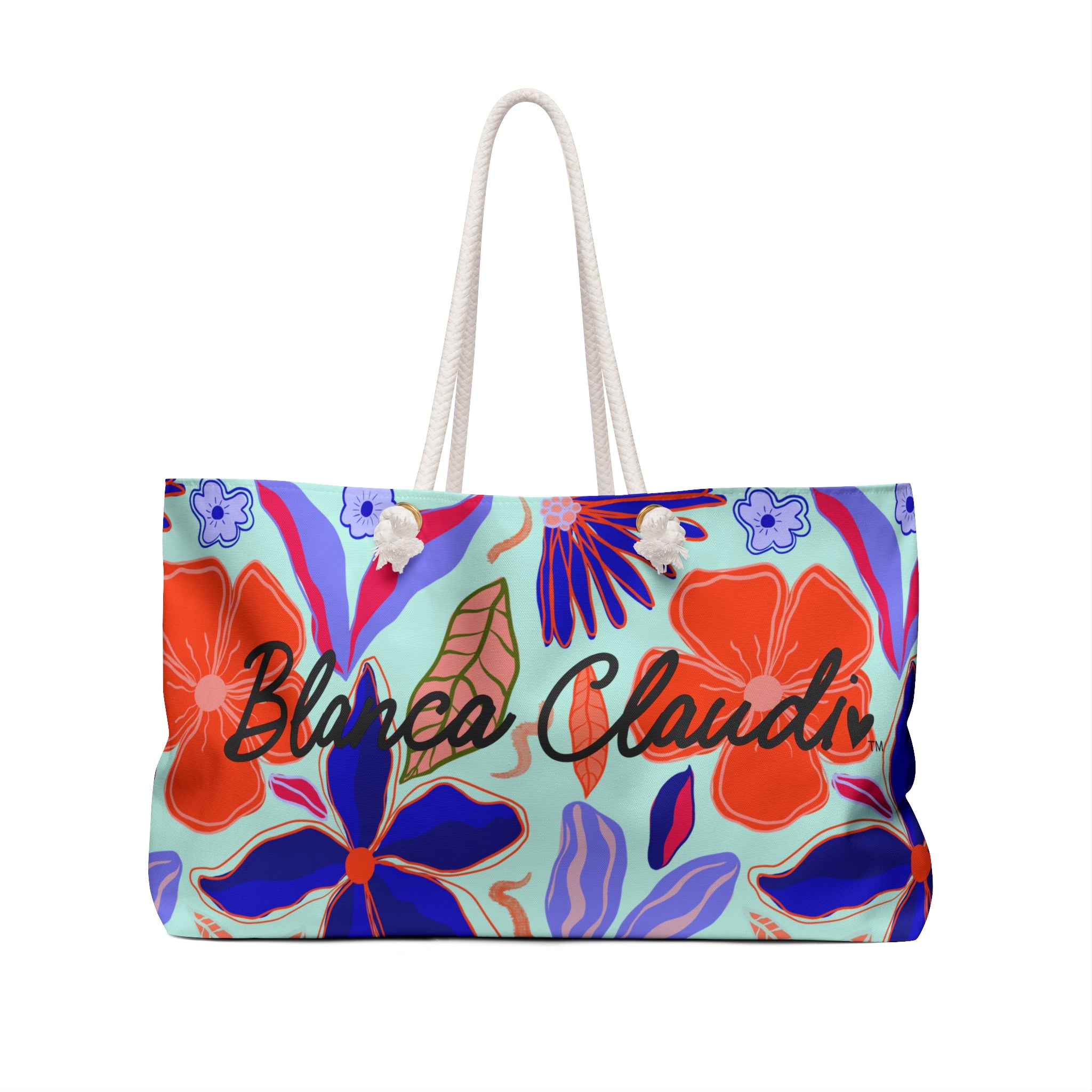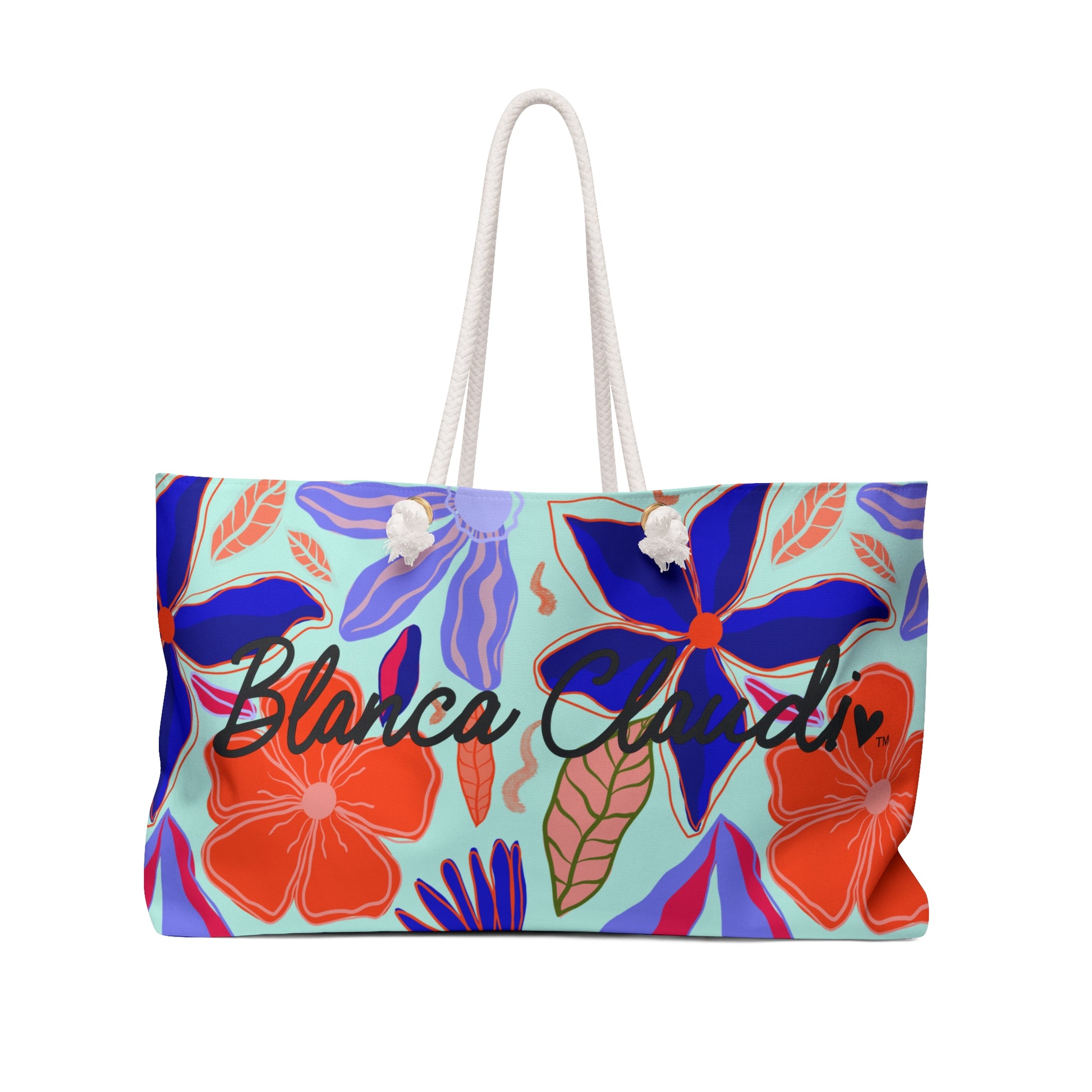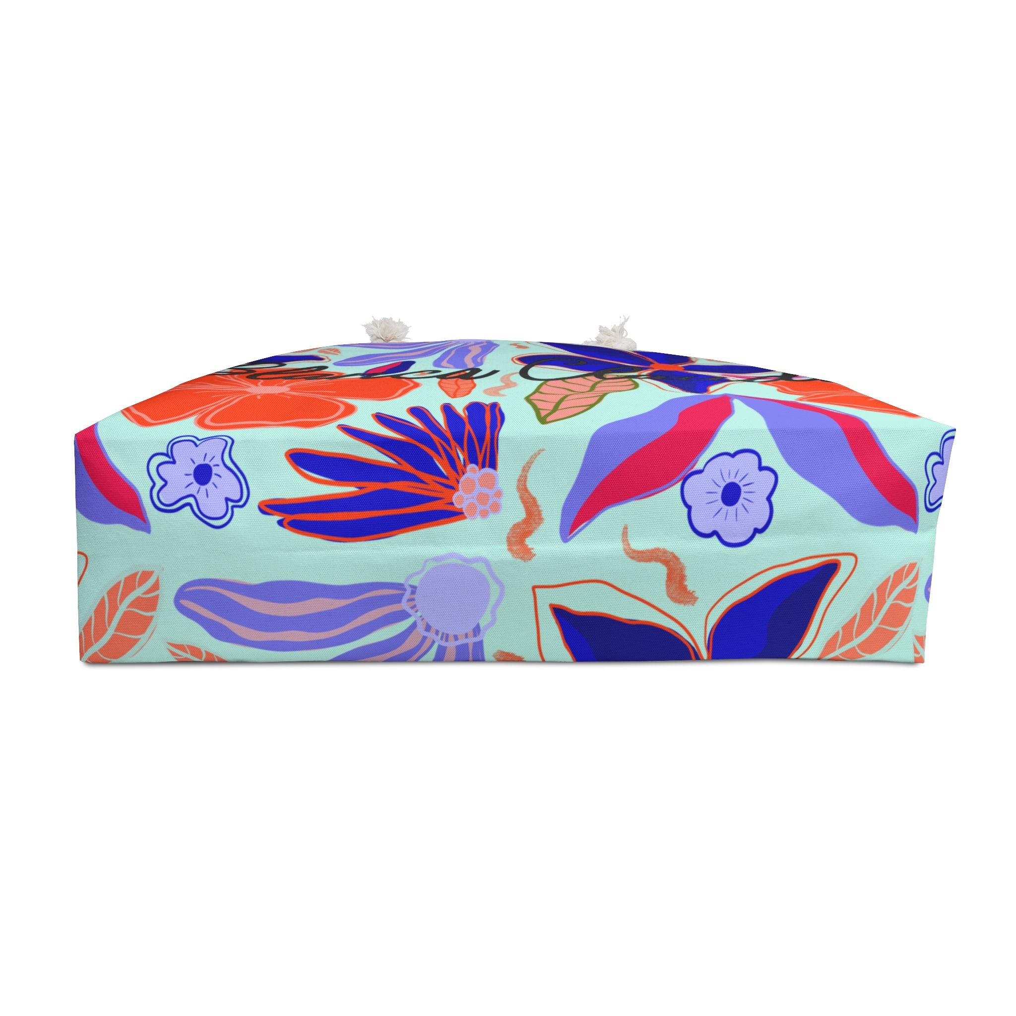 Este weekender bag lo tiene TODO: espacio de sobra, print ilustrado y esa vibra que te hace sentir en modo vacaciones aunque estés yendo al colmado. 🌈✨ Tiene asas de soga en crema, fondo estructurado y un interior suavecito que mantiene todo en su sitio.