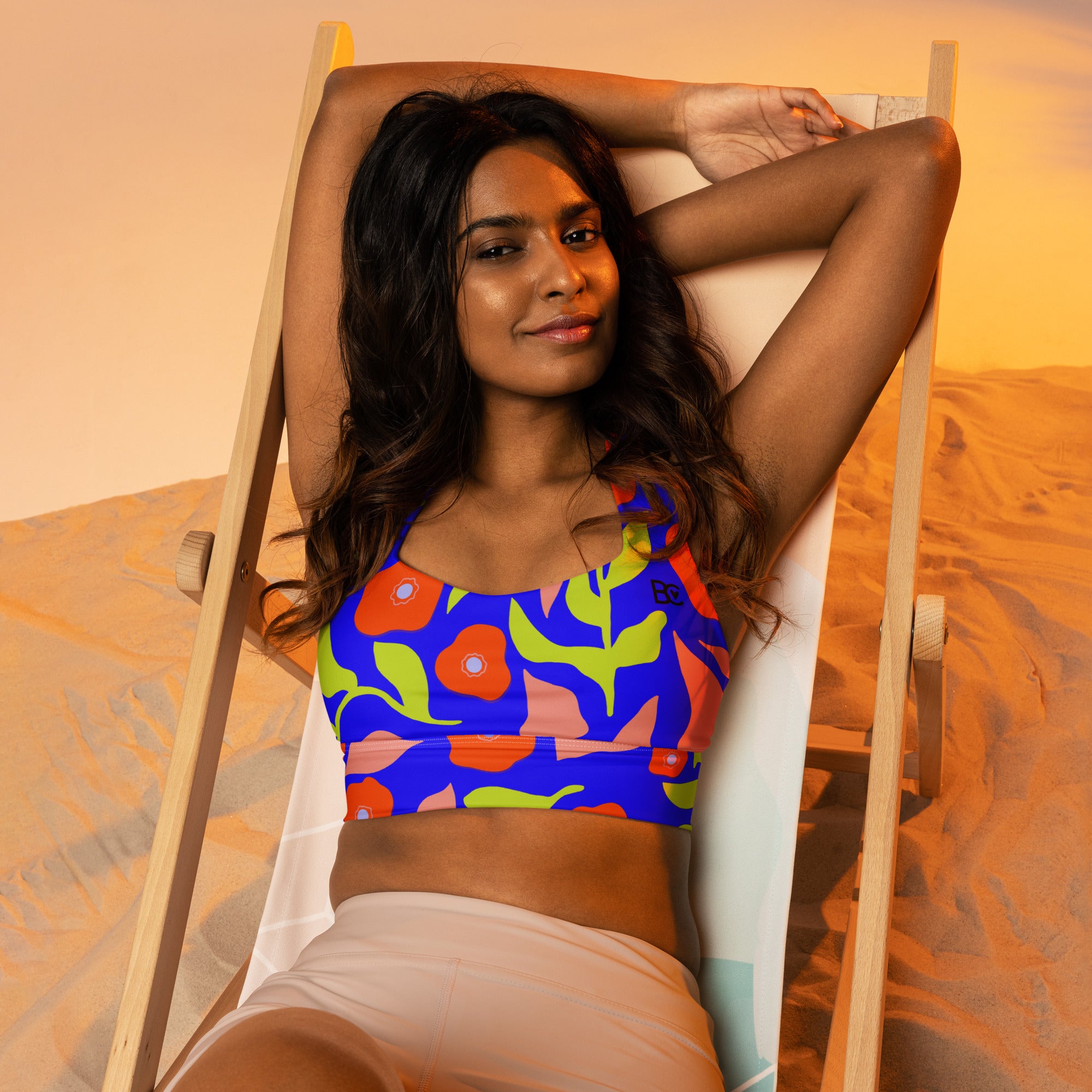 Este es el sport bra perfecto para hacer ejercicio. El tejido compresivo es de doble capa y los tirantes garantizan una gran sujeción mientras corres, saltas o haces pesas. ¡Póntelo para hacer ejercicio o bien como top de tu conjunto en un día soleado! Ilustrado completamente a mano por Blanca Claudio, para que dejes de ir con al gym con el mismo "basic" aburrido. 🔥