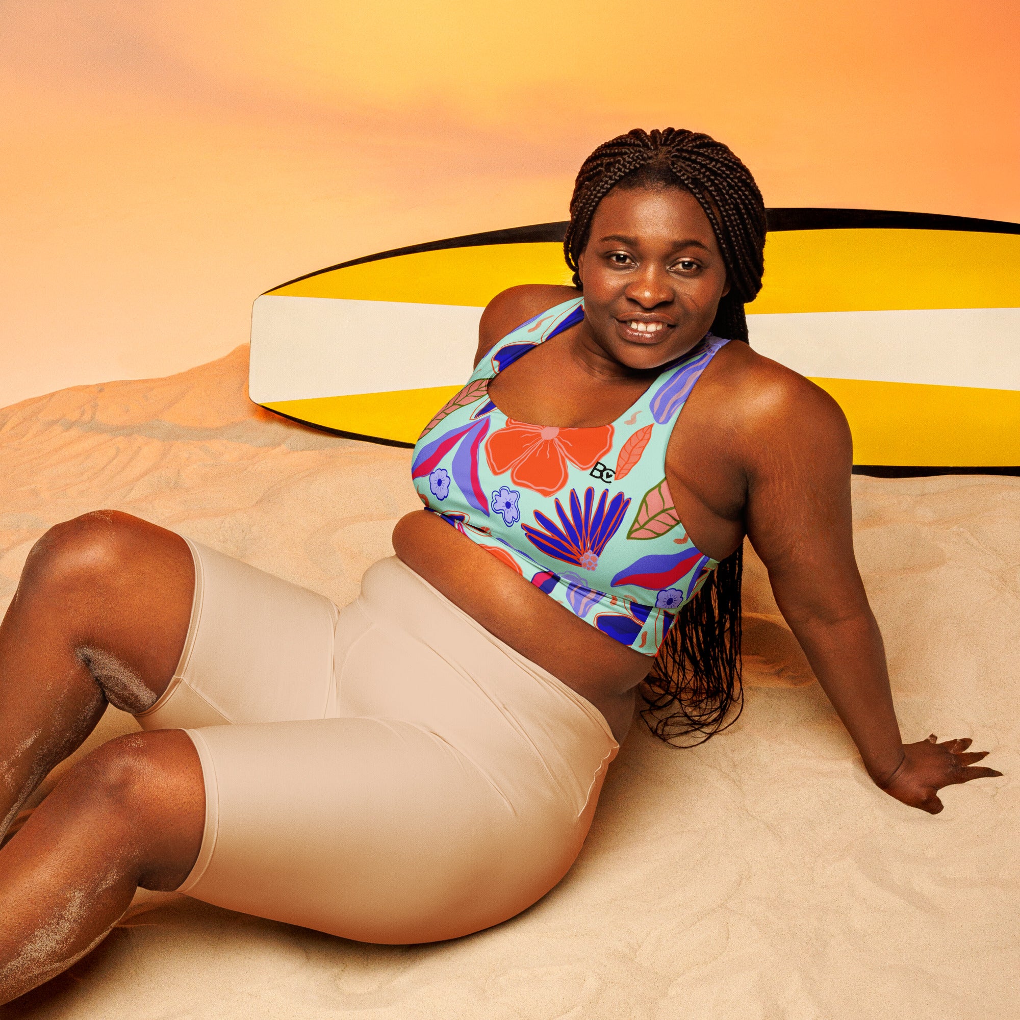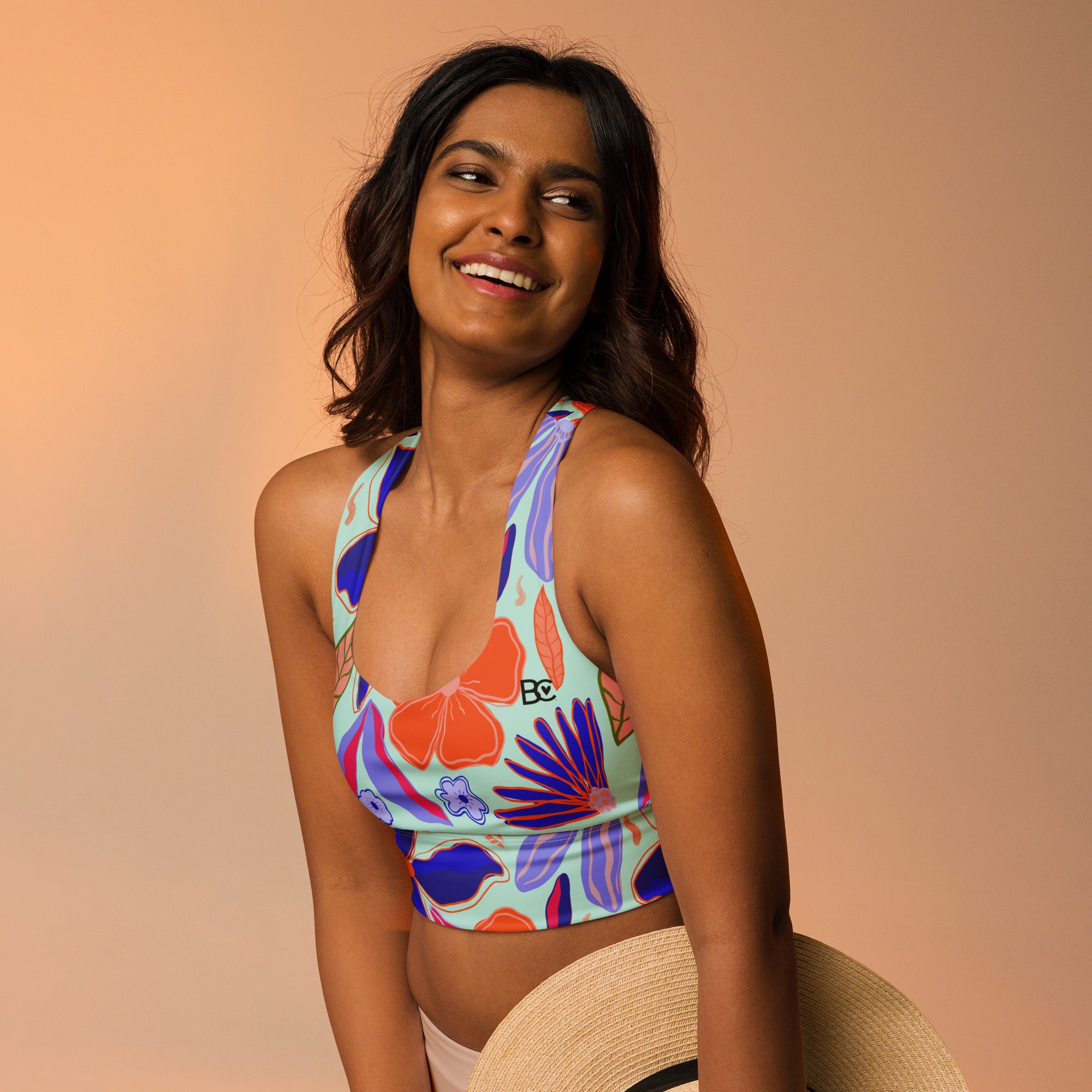 Este es el sport bra perfecto para hacer ejercicio. El tejido compresivo es de doble capa y los tirantes garantizan una gran sujeción mientras corres, saltas o haces pesas. ¡Póntelo para hacer ejercicio o bien como top de tu conjunto en un día soleado! Ilustrado completamente a mano por Blanca Claudio, para que dejes de ir con al gym con el mismo "basic" aburrido. 🔥
